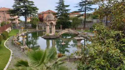 La bellezza, il fascino e il mistero di questo “luogo incantato” della Riviera di Ponente sono di nuovo pronti a soddisfare la curiosità dei visitatori dopo l’accurato restauro concluso nel 2006. Il completo recupero del giardino, sia dal punto di vista della flora che per il consolidamento delle strutture, consente oggi di ritrovare l’atmosfera pensata dallo stesso Adrien Wettach, del quale si racconta una grande passione per le piante. Nell’insieme il parco riflette il patrimonio vegetale tipico dei giardini storici della Riviera. I camminamenti ben delimitati invitano alle passeggiate, mentre tutto intorno le colonne a fuso, gli archi arditi, le decorazioni assolutamente uniche, le fontane ed il laghetto col suo ponticello di ispirazione orientale, costituiscono il completamento di una scenografia suggestiva e fiabesca. Fu lo stesso Grock a guidare il progetto firmato dal tecnico Armando Brignole, non sorprenda pertanto l’originalità di questa villa difficilmente definibile. Più che tentare di ricondurla ad uno stile è invece opportuno considerarla una sorta di autoritratto, espressione di una personalità straordinaria, giocosa e creativa